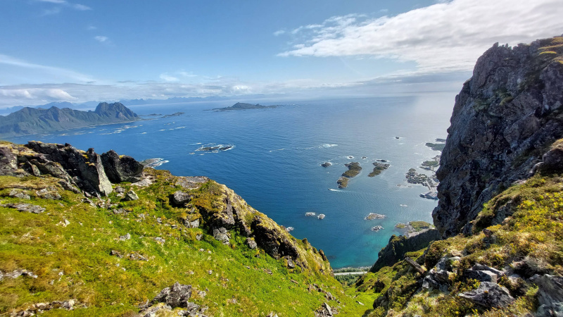 Auf dem Weg in den Süden wählten wir die Route durch Norwegen, entlang der Küste. In schier endlosen Kurven schlängelte sich die Straße entlang, ein Fjord schöner als der andere, und unberührte Landschaft soweit das Auge reicht. In Tromso, der größten Stadt im hohen Norden, machten wir einen Stopp für drei Tage. Hier konnten wir das Stadt- und Kulturleben auskosten und ausgedehnte Mountainbike-Touren durchführen. Aufgrund der Schneelage aber nur bis ca. 300 m Seehöhe. Es wären sogar noch Skitouren möglich gewesen.